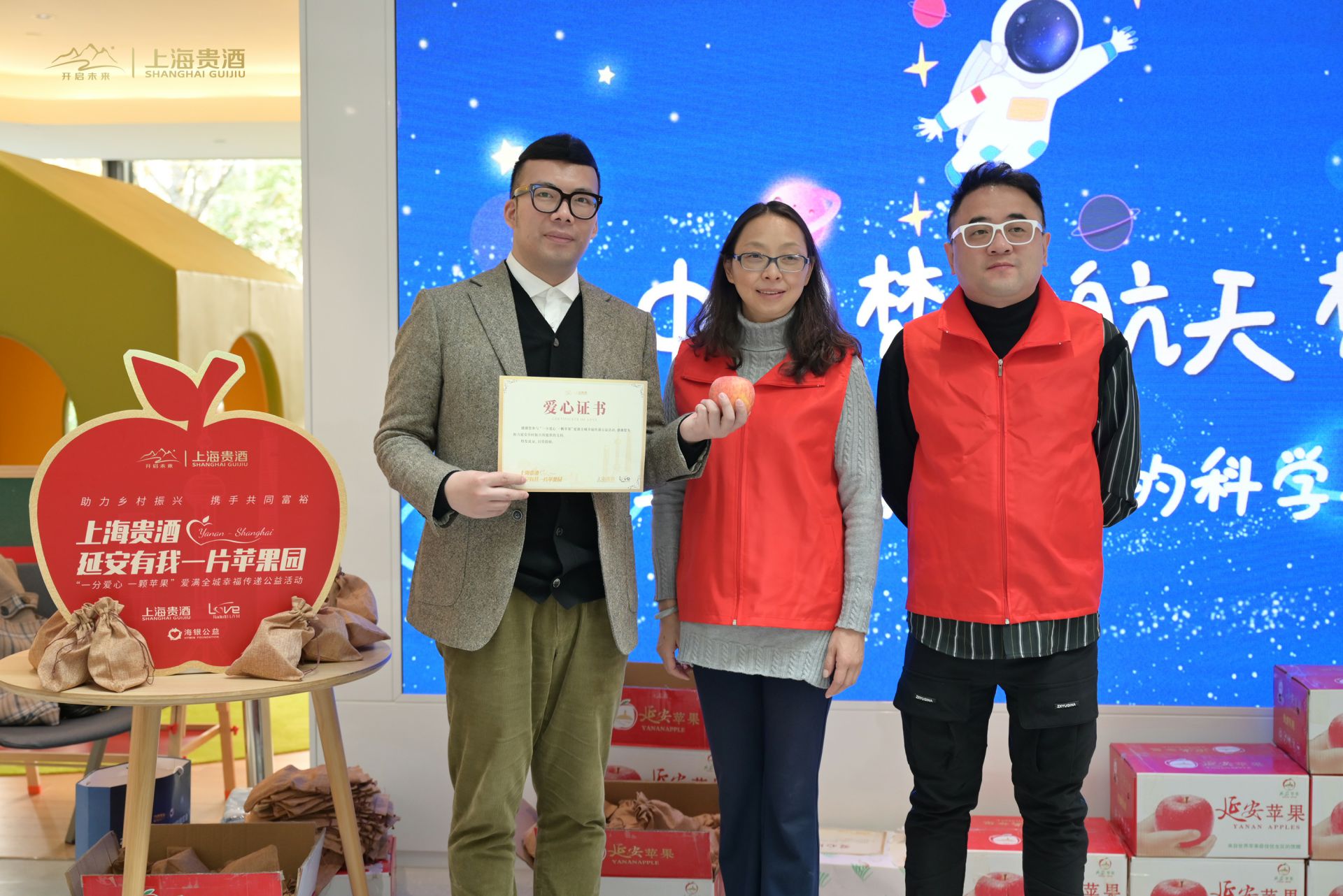 曾经,延安精神让黄土地上结出了丰硕的苹果,今天,延安精神和四方母亲河水让这一株株果树茁壮成熟。跨越1549公里,在上海的初冬,在“一份爱心 一颗苹果”爱满全城幸福传递公益活动中,两万多颗延安苹果在街头巷尾通过爱心传递,也为MK体育官网入口-MK(中国)一站式服务官网“幸福三部曲”谱下圆满的乐章。MK体育官网入口-MK(中国)一站式服务官网以实际行动点燃城市温度,助力乡村振兴!