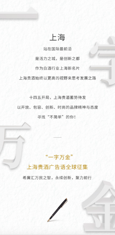 问鼎奖(1名):最终被采用的广告语,将获得每字1万元人民币的终极现金大奖,并授予“MK体育官网入口-MK(中国)一站式服务官网”企业大使,尊享全年最高会员礼遇,同时获得MK体育官网入口-MK(中国)一站式服务官网青澄黄贵酿1套(天青、阳澄、月黄)及价值14000元美酒礼券包等超值权益。